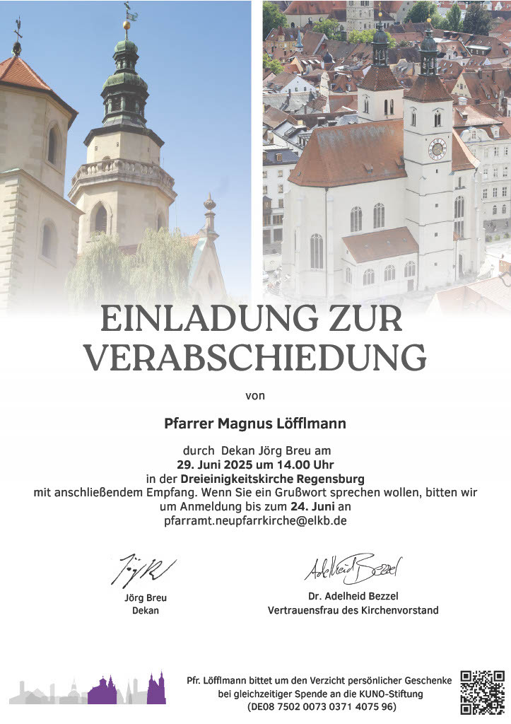 "Die Neupfarrkirche, die Gottesdienste, die Besucher waren bei Euch in guten Händen.